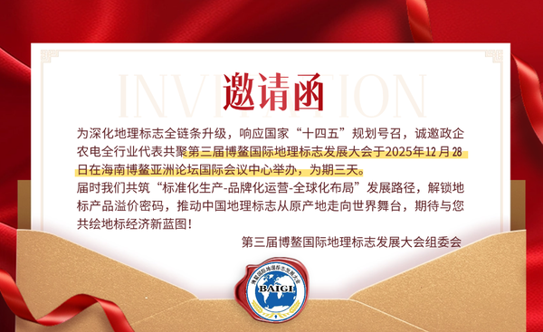 江北枫林红似火,海南秋景胜春华。2024年11月5日,第二届博鳌地理标志发展大会在海南省和琼海市人民政府大力支持下胜利召开。大会现场大会围绕生态地理标志产业相关领域,探讨如何为生态地理标志产业发展提供新动力,推动内外贸一体化发展、创建新的国内国际双循环双增长双平衡发展模式,从而在海南搭建起一个崭新的中国与世界开展地理标志交流的综合平台。参会领导共同启动开幕式博鳌国际地理标志发展大会组委会主席...